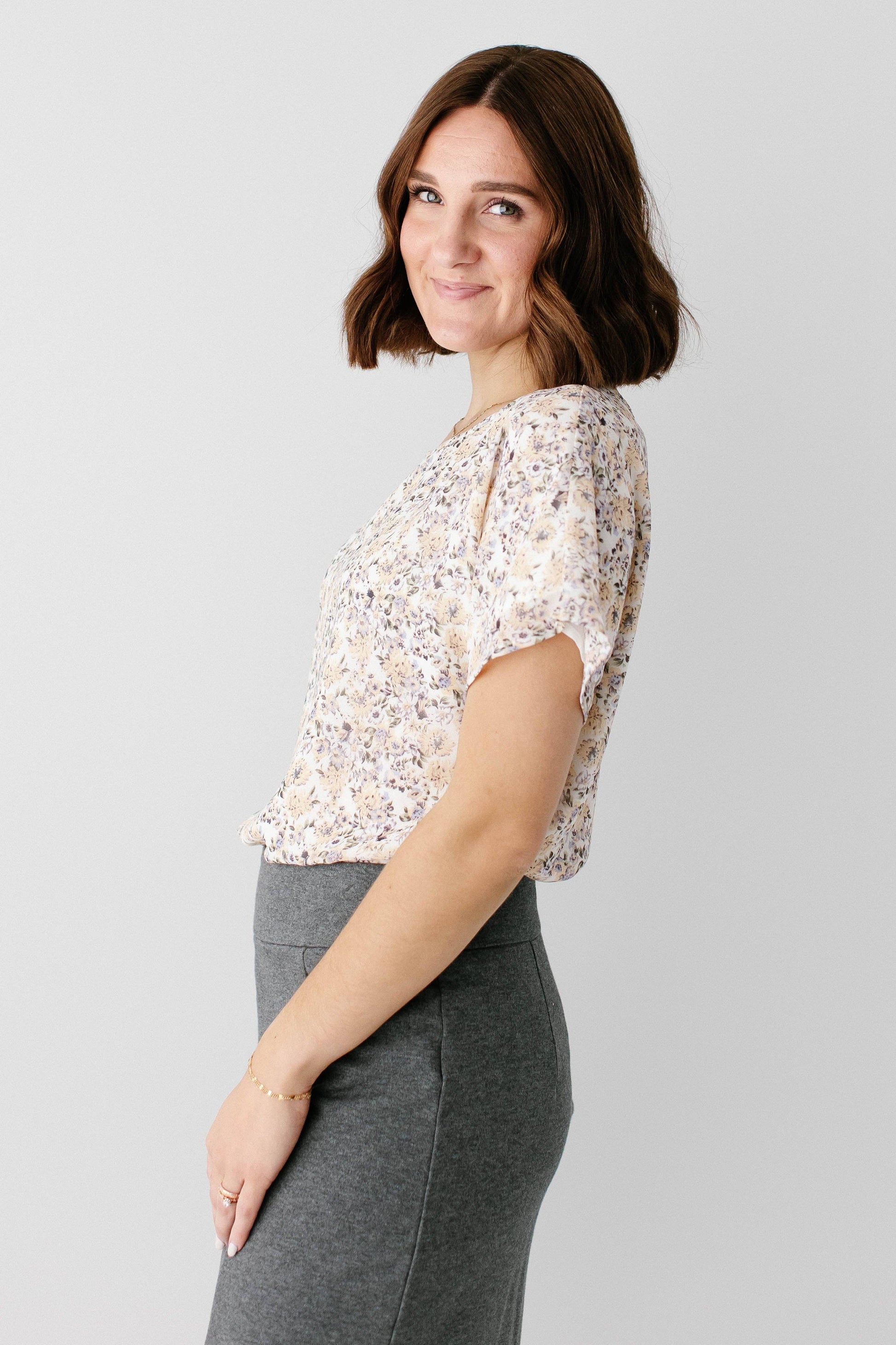 An essential for your elevated wardrobe, meet the 'Sheila' Dolman Sleeve Floral Print Top! With a shirttail hem, full lining, and floral spring perfect for spring, this is the classiest blouse for church or the office.