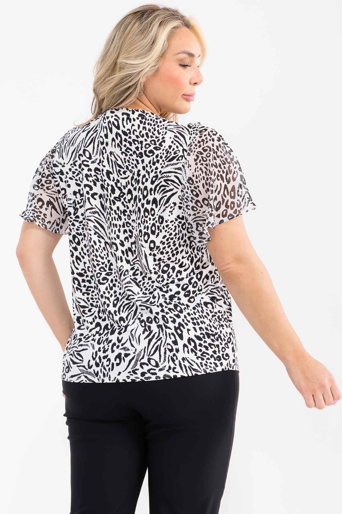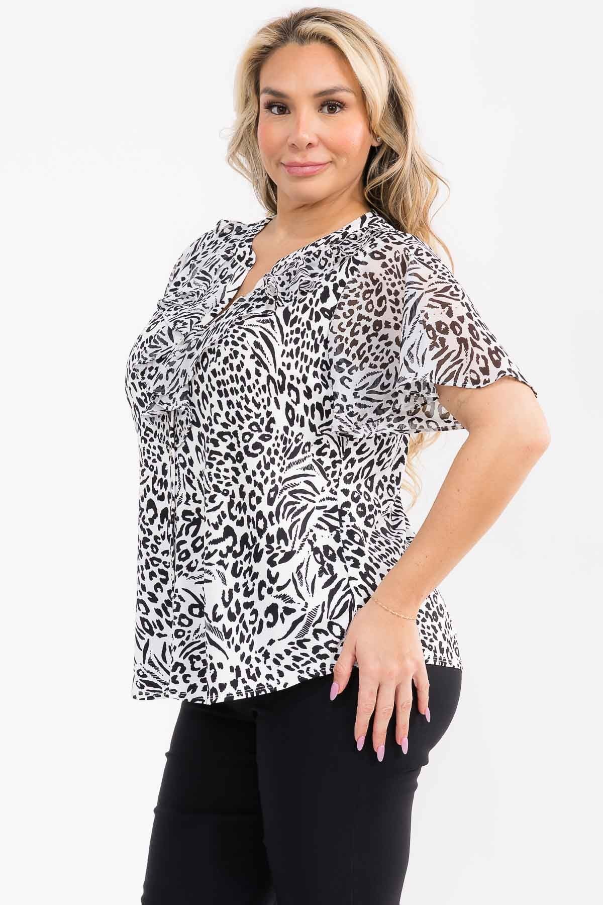 PLUS ANIMAL MIX MEDIA CASCADE BLOUSE - Sleeveless - Neck tie - V neckline - Shimmer - Mock neckline - Relaxed fit 95% POLYESTER 5% SPANDEX
