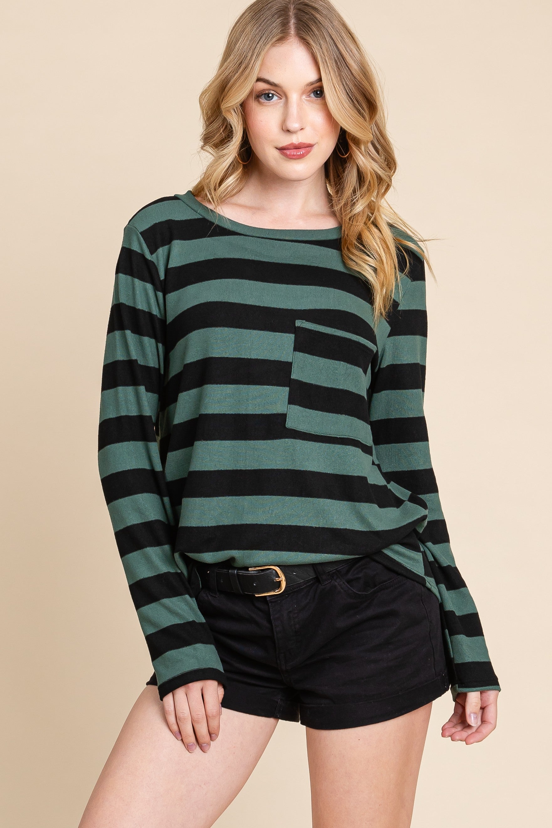Soft and comfortable, this striped crew is a perfect staple for weekend dressing. Framed by a round neckline with a gentle fit, this stripy top is the ideal addition to your warm weather rotation. Pair with comfortable trousers or everyday denim for effortless style. 95% Polyester 5% Spandex Model is wearing size S and is 5'10"/178cm Made in USA